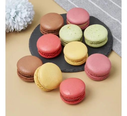 Perfect for those with dietary preferences, these vegan macarons are made with aquafaba and natural ingredients. Flavors include strawberry, passionfruit, lavender, and more. Light, airy, and completely dairy-free and gluten-free.